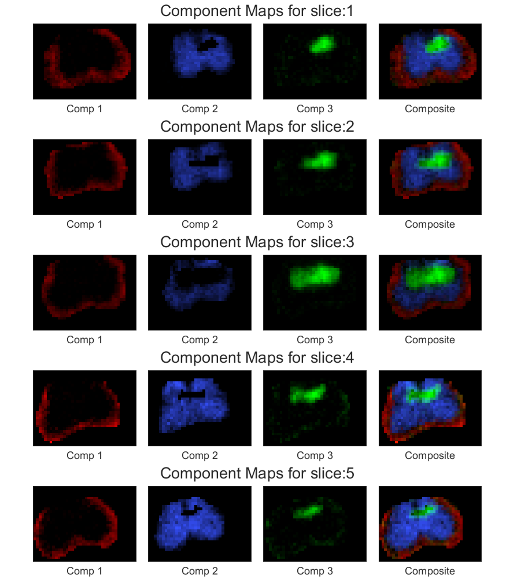 The above command will store five images named ‘Phantom2D/Phantom2D_data_component_maps_*.png’ (‘*’-> slice number) corresponding to the component maps for all the slices and a